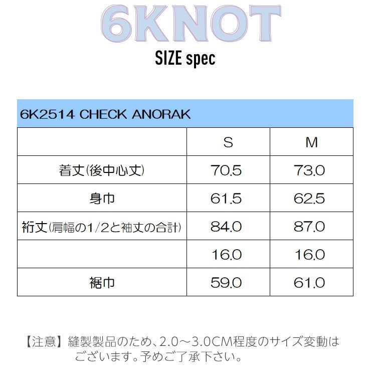 2026 6KNOT シックスノット CHECK ANORAK チェックアノラック ジャケット スノーボード スキー ウェア スノボウェア