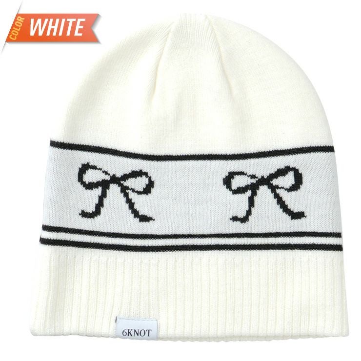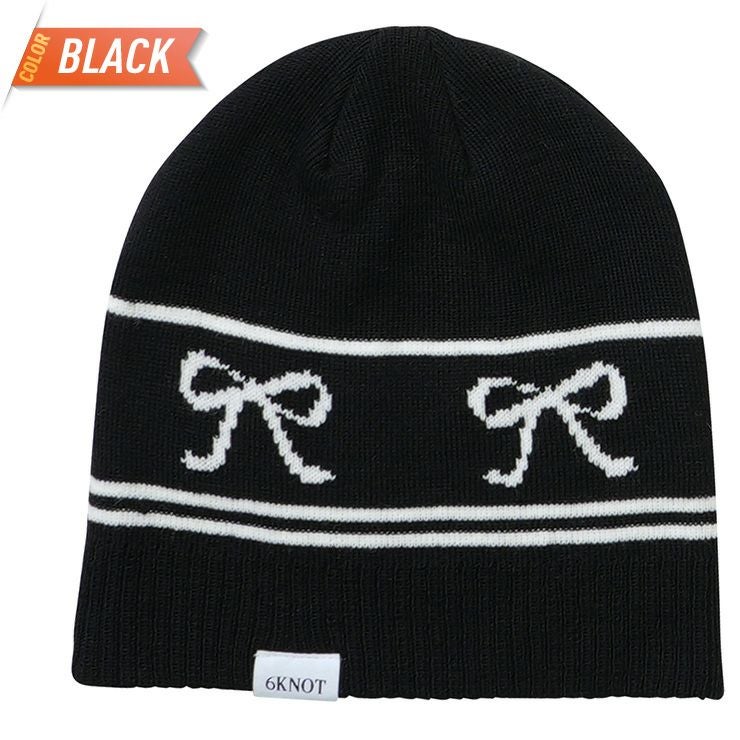 ジャガード織でリボンを表現したシングルビーニーです。