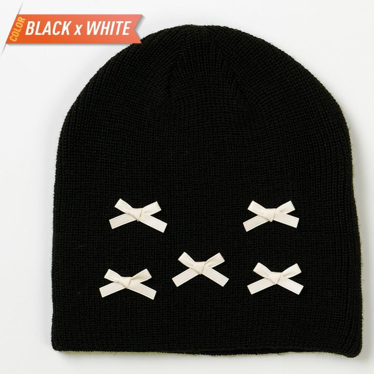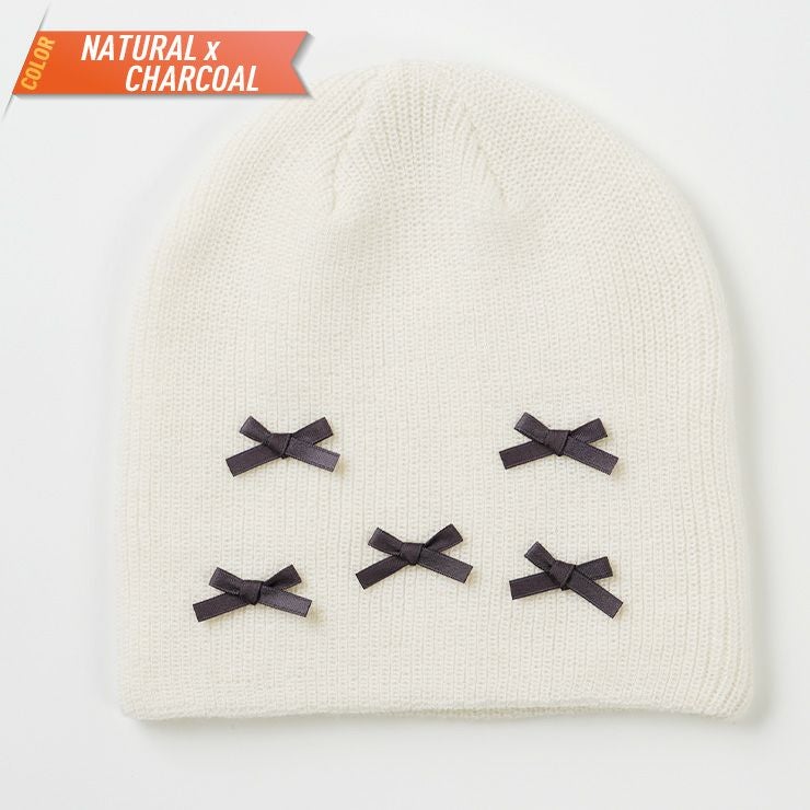 被りやすいリブ編みシングルビーニー。トレンド感あるサテンのリボンがアクセントです。