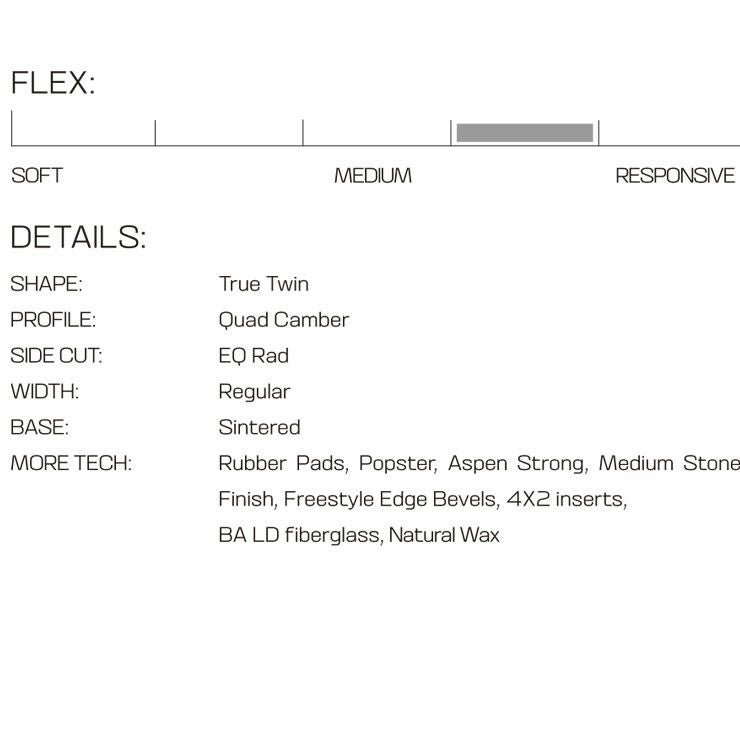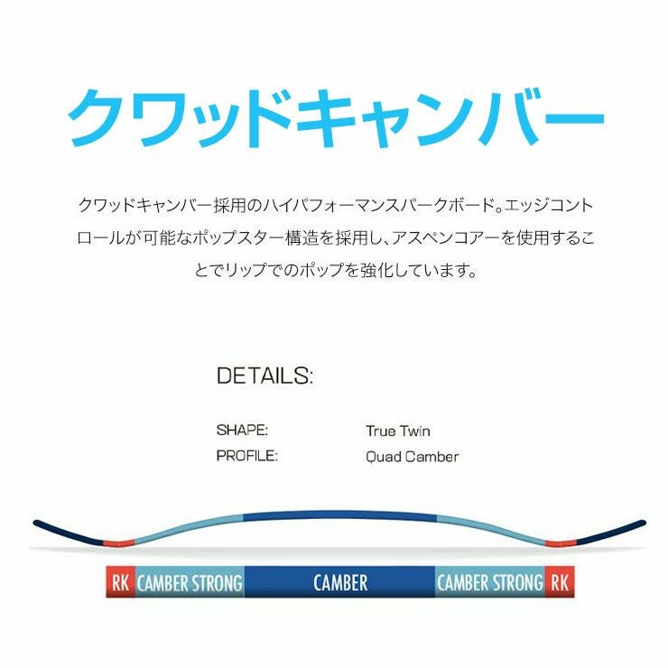 ツインシェイプの高性能パークボード。Quad Camber 構造でエッジコントロール性能と安定したボードの許容範囲を実現し、Popster 構造と Aspen Core の組み合わせでリップでのより強い反発力を生み出しています。大会に勝つにはハックナイフを乗るべき!強いキッズライダー使用率NO.1!!