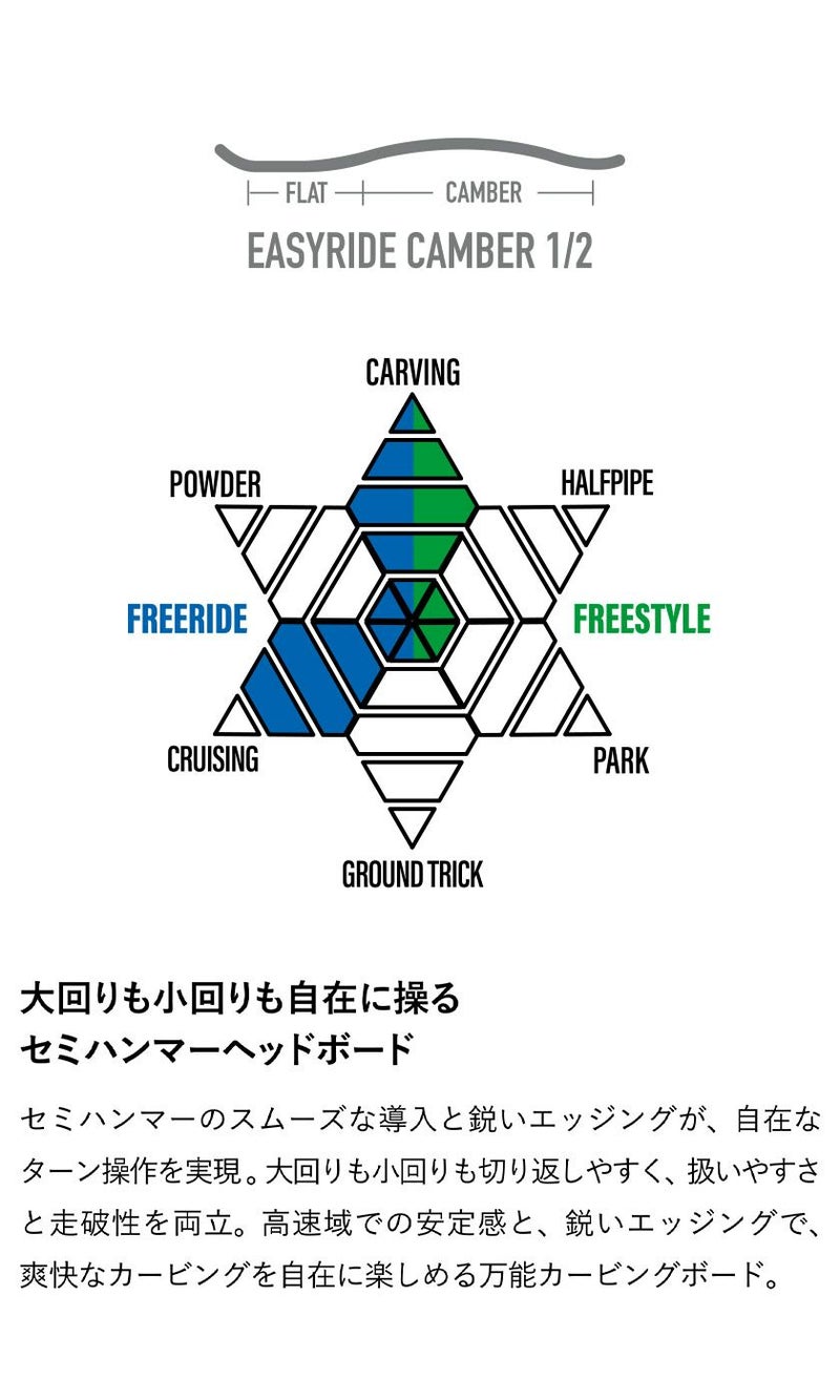 高速域での安定感と、鋭いエッジングで、爽快なカービングを自在に楽しめる万能カービングボード。