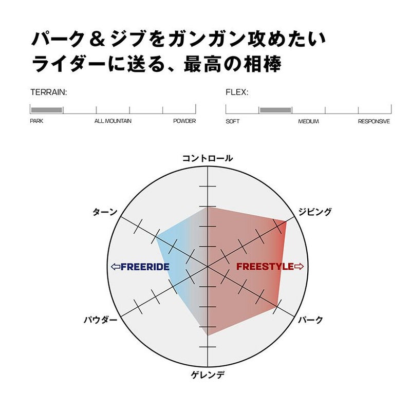 ミッドソフトフレックスとロックアウトキャンバーの組み合わせがレールにロックし、ジャンプにはポップの遊び心を提供します。