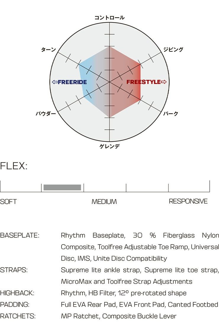 Rhythmは最高のフィット感と快適性を実現するためのテックをふんだんに盛り込んだビンディングです。上達を望むライダーのためにデザインされた軽量なビンディングで、左右非対称デザインを採用し、完璧なバランスでサポート力と操作性を実現しました。快適性と手軽な調整機構を実現するテックも満載です。