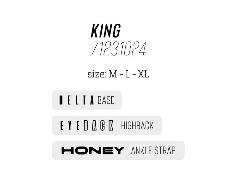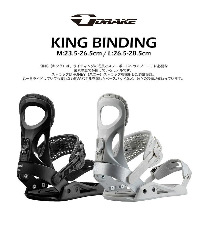 ライディングの成長とスノーボードへのアプローチに必要な要素の全てが揃っているモデルがこの KING。今年はストラップにハニー・ストラップが採用され軽さも加わりました。丸一日ライドしていても疲れないEVAパネルを配したベースパッドなど、数々の装備が備わっ ています。