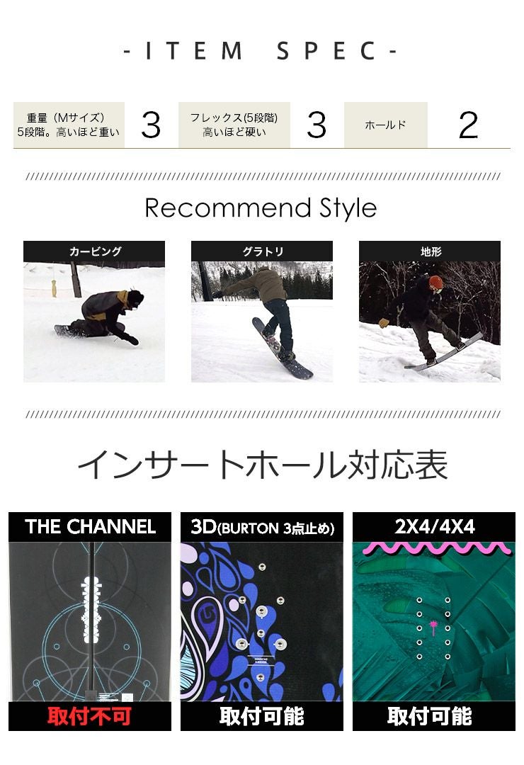 始めたその日からターンを中心にグラトリも出来るマジックボード。センターフレックス(足と足の間を柔らかく)にすることで、その板のしなりと捻じれをより簡単に使えるよう設計。「より楽に軽い荷重で曲がってくれる」そんなオートマチックな乗り心地が実現されたボードです。