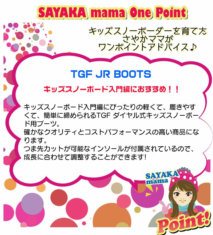 ・キッズスノーボード入門編にぴったりの軽くて、履きやすくて、簡単に締められるTGF ダイヤル式キッズスノーボード用ブーツ。