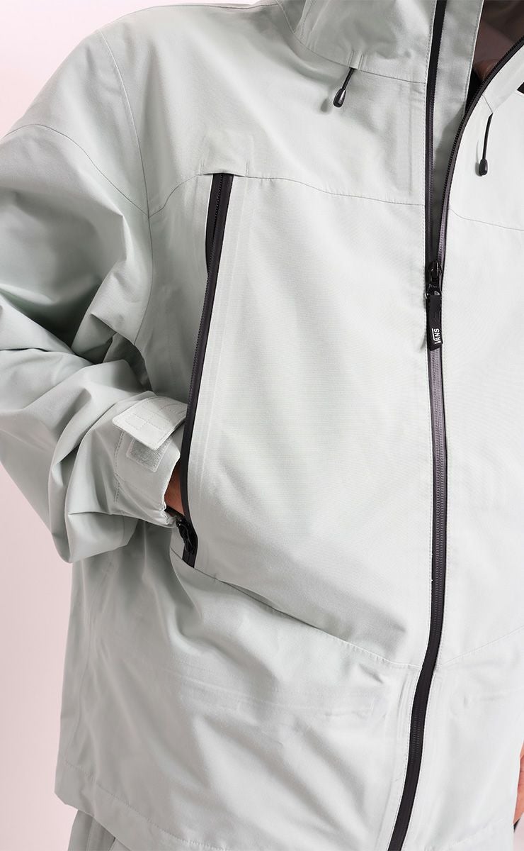 フルシームテープ加工が施され、水の侵入をシャットアウトし、常にドライで快適な着心地を与えてくれる。 ウェア内にこもった湿気もジッパーベントで排除。