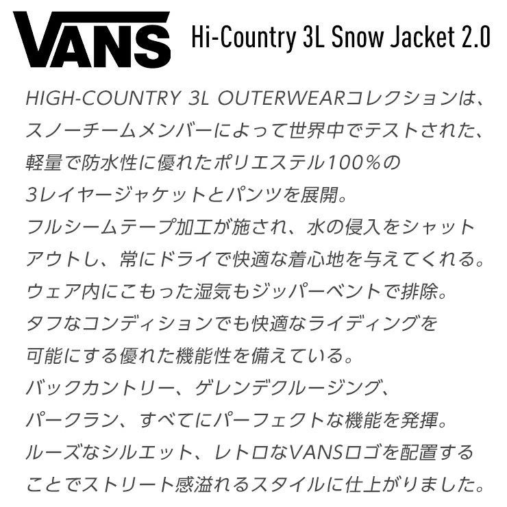 HIGH-COUNTRY 3L OUTERWEARコレクションは、スノーチームメンバーによって世界中でテストされた、軽量で防水性に優れたポリエステル100%の3レイヤージャケットとパンツを展開。