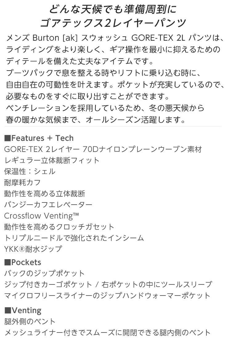 2026 BURTON バートン ak Swash GORE-TEX 2L Pants スウォッシュ ゴアテックス パンツ メンズ スノーボード スキー スノボー ウェア 大人ボードウェア
