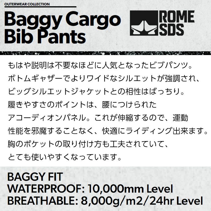 2026 ROME SDS ローム BAGGY CARGO BIB PANTS バギーカーゴビブパンツ スノーボードパンツ スキーパンツ