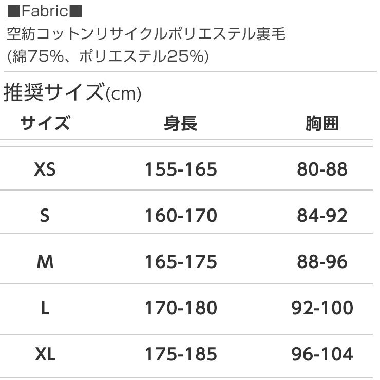 程よい厚さのスウェット生地は、幅広いシーズンにわたり着用しやすいのが魅力です。