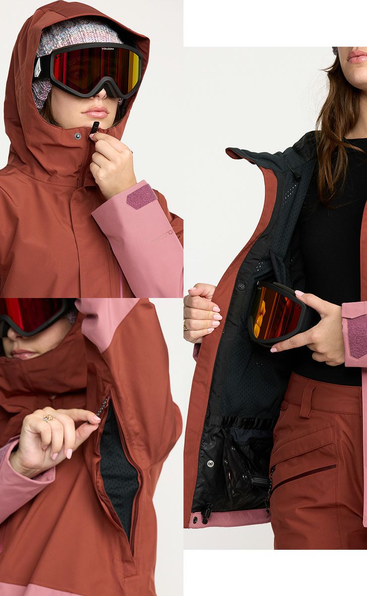 最高級の防水性と通気性を備えた Gore-Tex 2レイヤーメンブレンで体をドライに保つことが保証された女性用スノージャケットです。