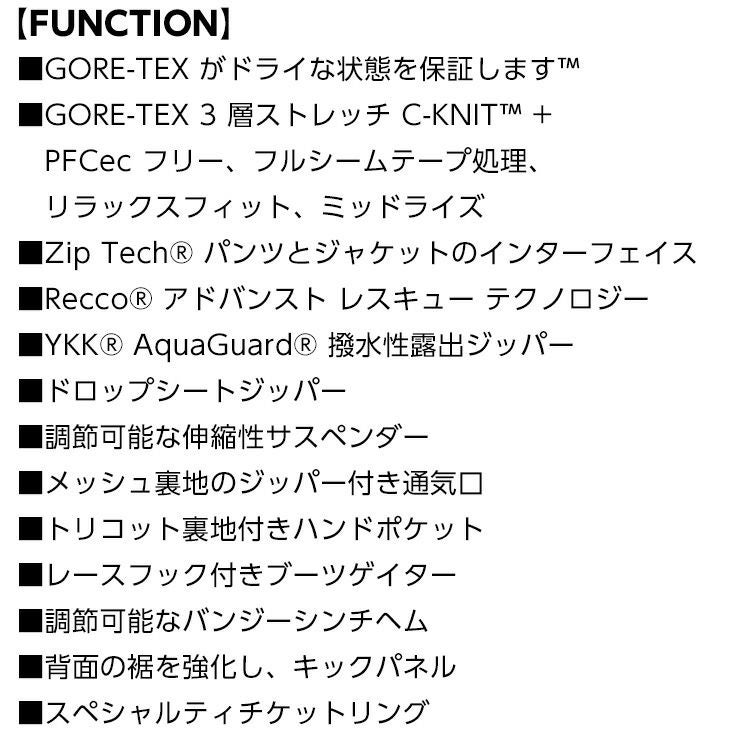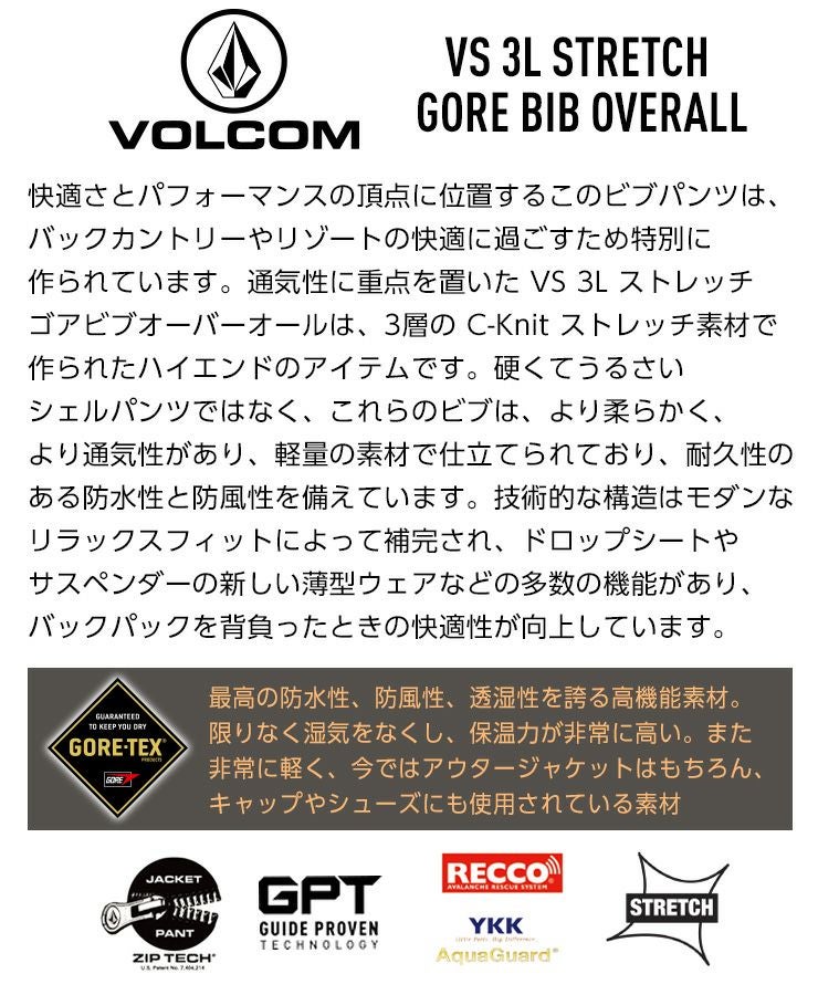 通気性に重点を置いた VS 3L ストレッチゴアビブオーバーオールは、3層の C-Knit ストレッチ素材で作られたハイエンドのアイテムです。
