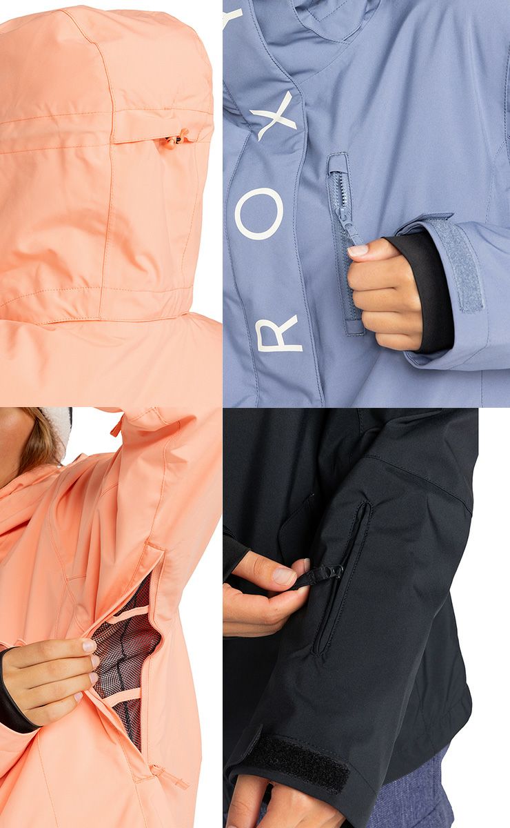 胸のROXYロゴが印象的なジャケットは、ヒップが少し隠れる丈感とすっきりとしたシルエットが美しく、着る人を選ばない人気ナンバーワンの1着です。