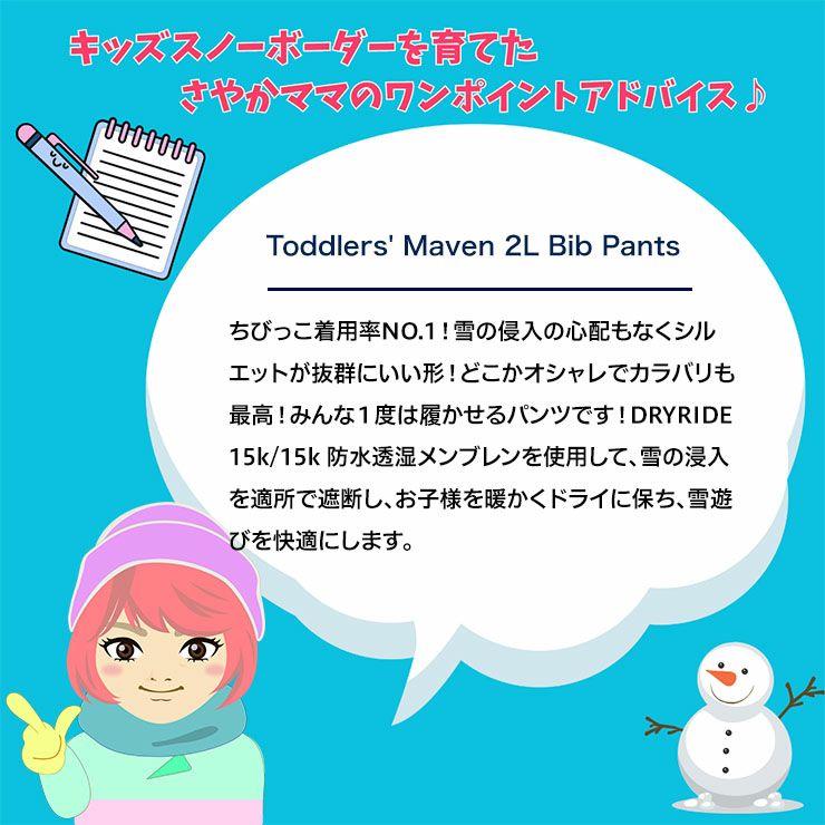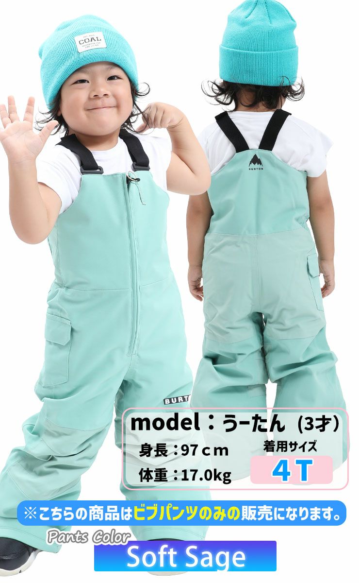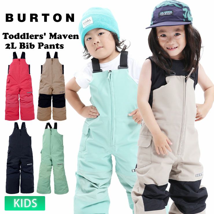 ライディングやソリ遊びにぴったりのトドラー Burton メイヴン ビブ 2L パンツ。服の中に雪が入らず暖かくドライな状態をキープできるので、雪の中で思い切り遊べます。