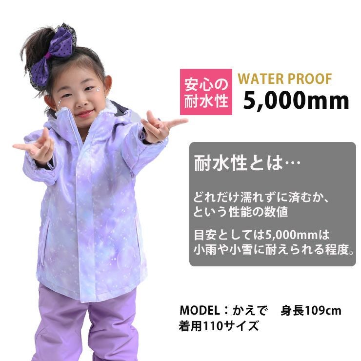 ジャケットとパンツの上下セットで、幼児のお子さまでも動きやすく、防寒性もしっかり確保。