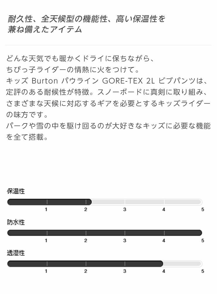 BURTON/バートン Kids' Powline GORE-TEX 2L Bib Pants
