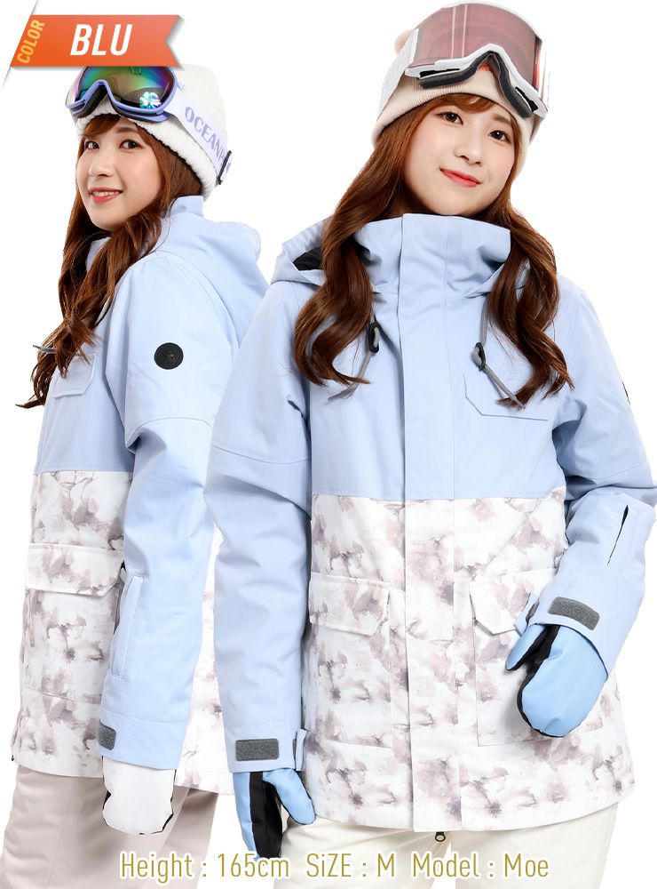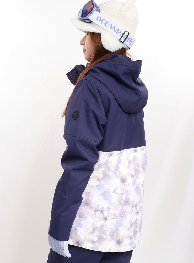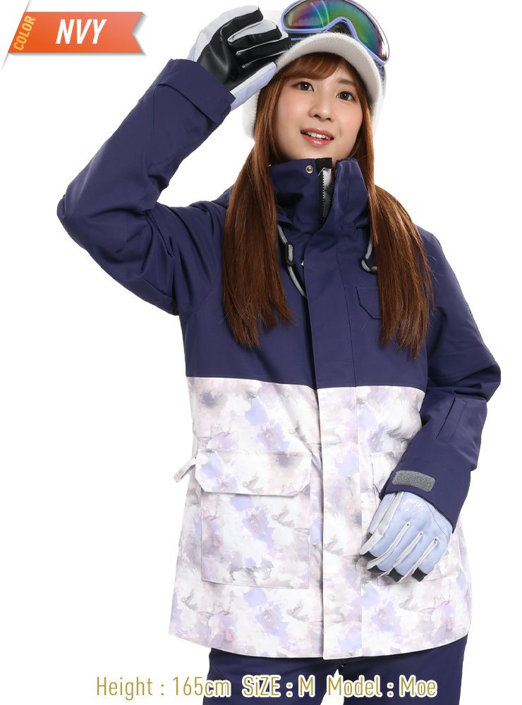 単色からの淡い花柄が女性らしいデザインで防寒対策も安心なスノーボ-ドジャケットです。