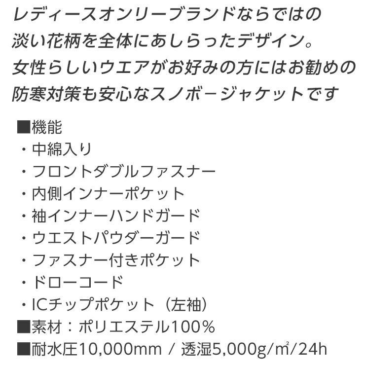 レディースオンリーブランドならではの淡い花柄を全体にあしらったデザイン。