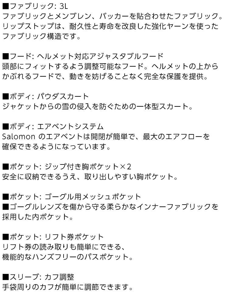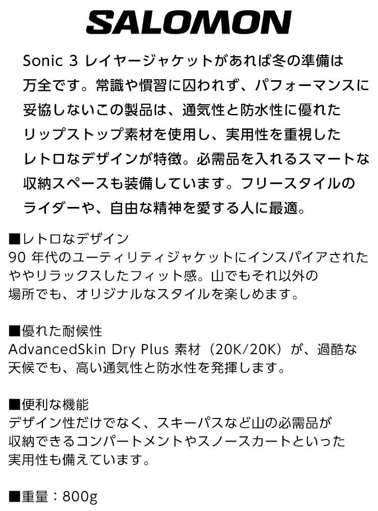 24-25 SALOMON サロモン SONIC 3L JACKET ソニック スリーレイヤー ジャケット スノーボード スキー ウェア LC2285700030
