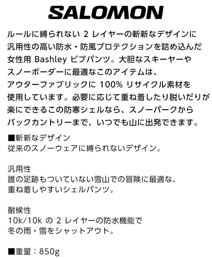 24-25 SALOMON サロモン BASHLEY BIB PANTS W バシュリー ビブ パンツ スノーボード スキー ウェア LC2271200020