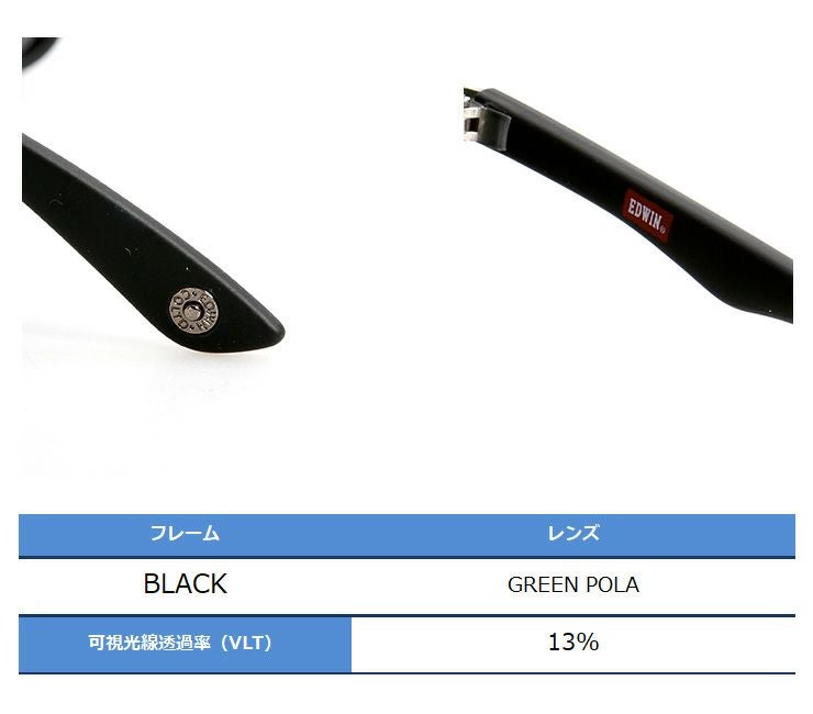 EDWIN エドウィン 偏光プラサングラス EDF-019-4 【BLACK】 GREEN POLA 偏光 スポーツ タウンユース【JSBCスノータウン】