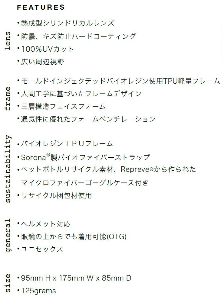 視野が広く軽量でフィット感の良いHEX。