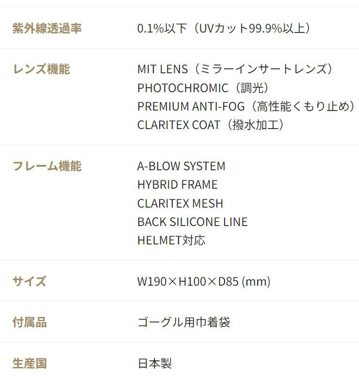 また「ミラーが剥がれない」というMITレンズの特長に太陽光の強弱によってレンズの濃さが変化する調光機能をプラス。
