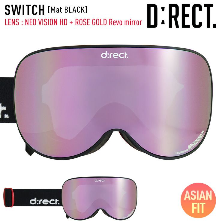 D:RECT ディレクト スノーボード ゴーグル SWITCH カラー:Mat BLACK レンズ:NEOVISON HD ROSE GOLD Revo mirror 平面