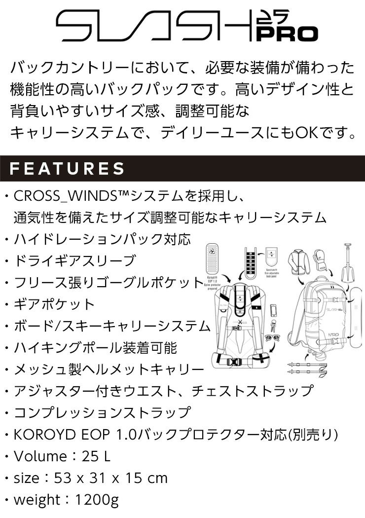 他の画像を見る 25-26 正規品 バックカントリー対応バックパック 2026 NITRO ナイトロ バックパック SLASH 25 PRO スラッシュプロ 25L スノーボード スキー バックカントリー ザック サイドカントリー リュック 通常販売価格 ¥ 29,480 のところ WEB価格 ¥ 26,532 税込 会員特別価格 ¥ 25,205 税込 カートに入れる お気に入りに登録する