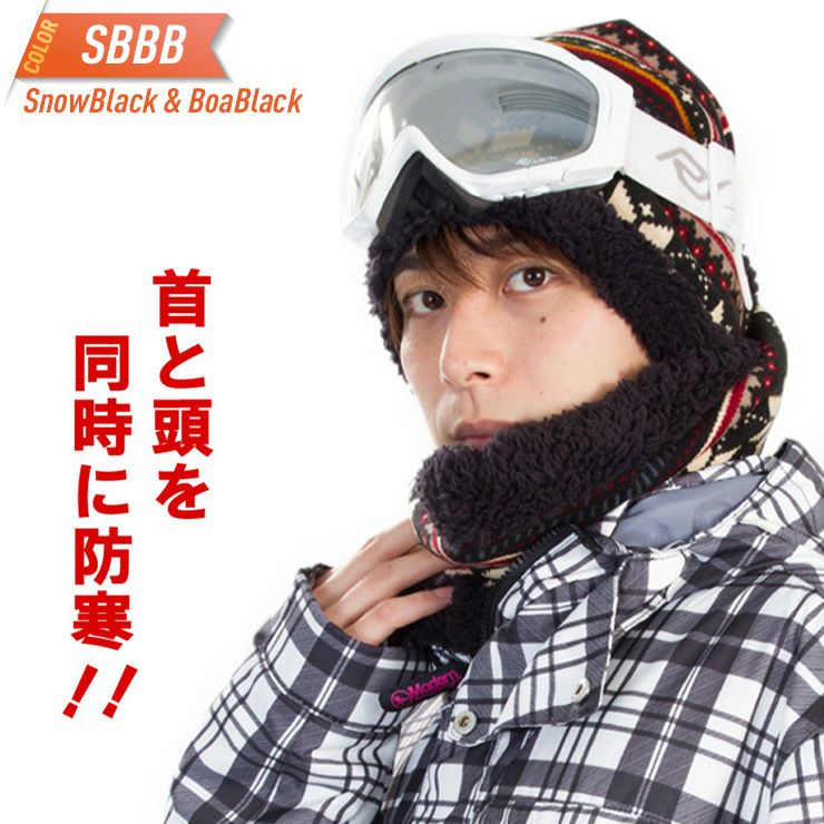 首と頭を同時に防寒できるネックウォーマーです。