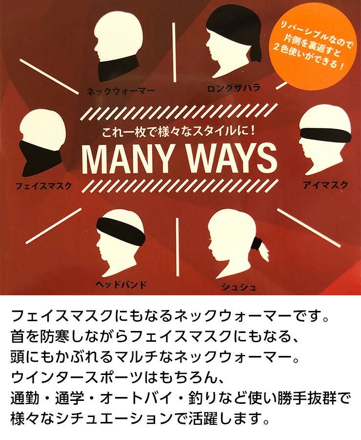首を防寒しながらフェイスマスクにもなる、頭にもかぶれるマルチなネックウォーマー。
