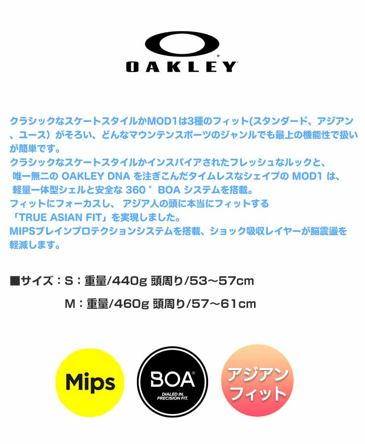他の画像を見る 【25-26モデル】 OAKLEY/オークリー MOD1 ASIAN FIT - MIPS 通常販売価格 ¥ 15,950 のところ WEB価格 ¥ 14,355 税込 会員特別価格 ¥ 13,636 税込 カートに入れる お気に入りに登録する