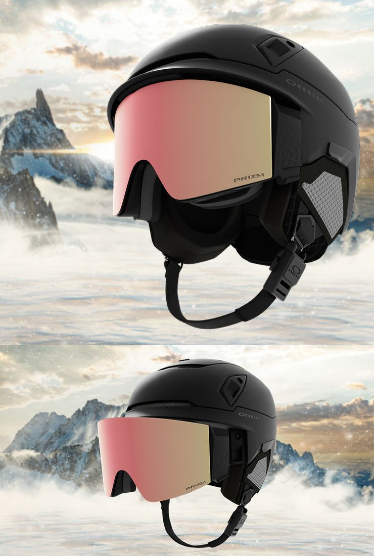 バイザー付きヘルメットです。PRIZMレンズはクリアな視界と雪面のコントラストを生み出すことで凸凹が見やすいレンズです。