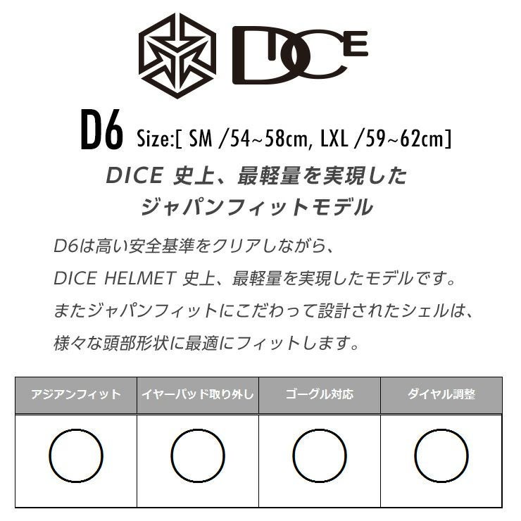 2025 DICE ダイス D6 ヘルメット MBK マットブラック スキー スノーボード ゴーグル対応 ジャパンフィット