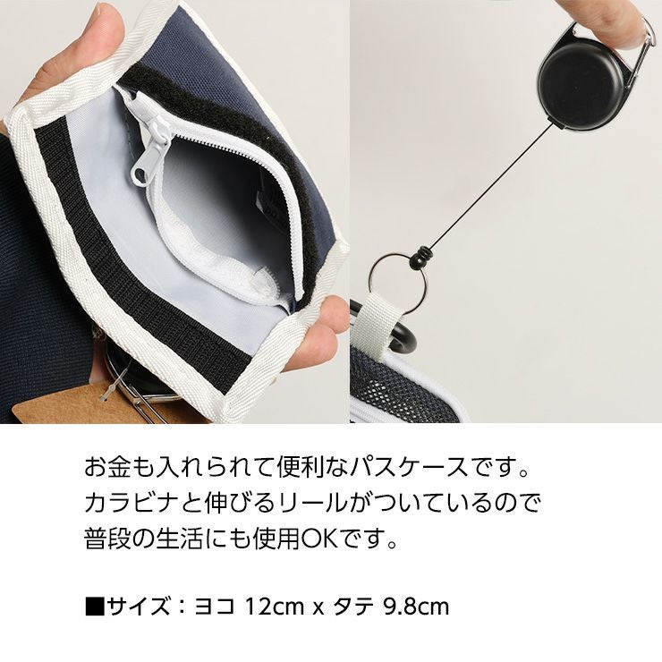 お金も入れられて便利なパスケースです。カラビナと伸びるリールがついているので普段の生活にも便利に使うことができます。