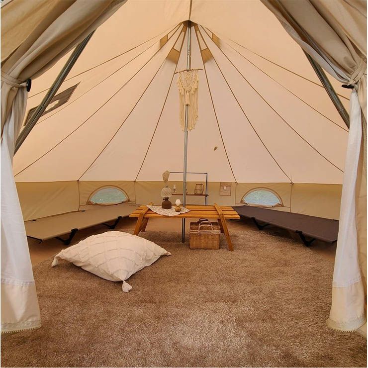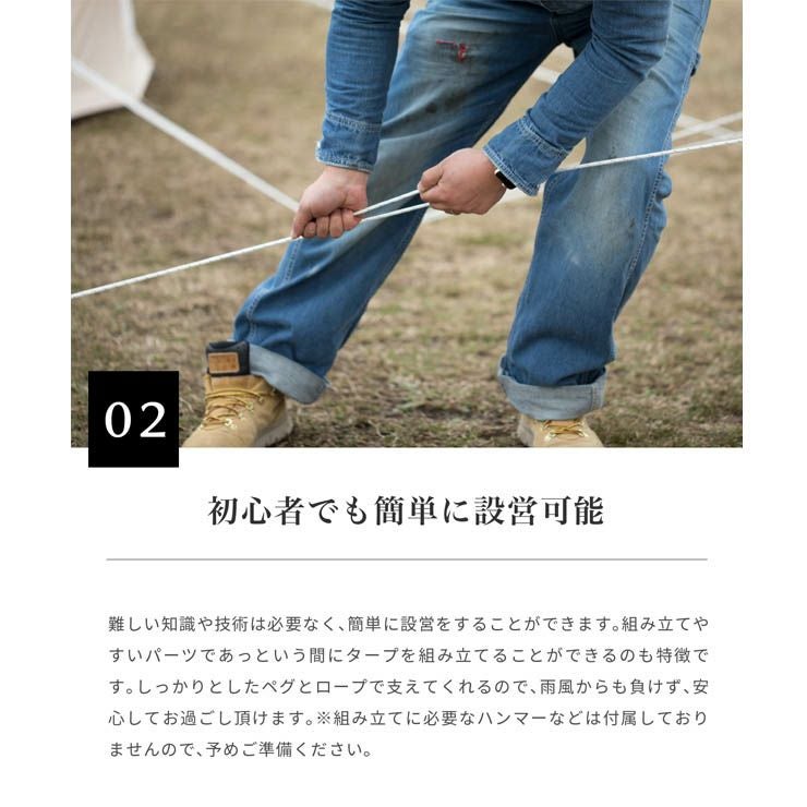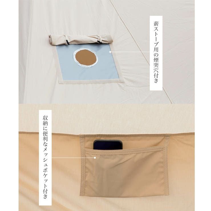 素材:テント本体:コットン35%、ポリエステル65%、ポリコットン素材シート:450gPVCメッシュクロス