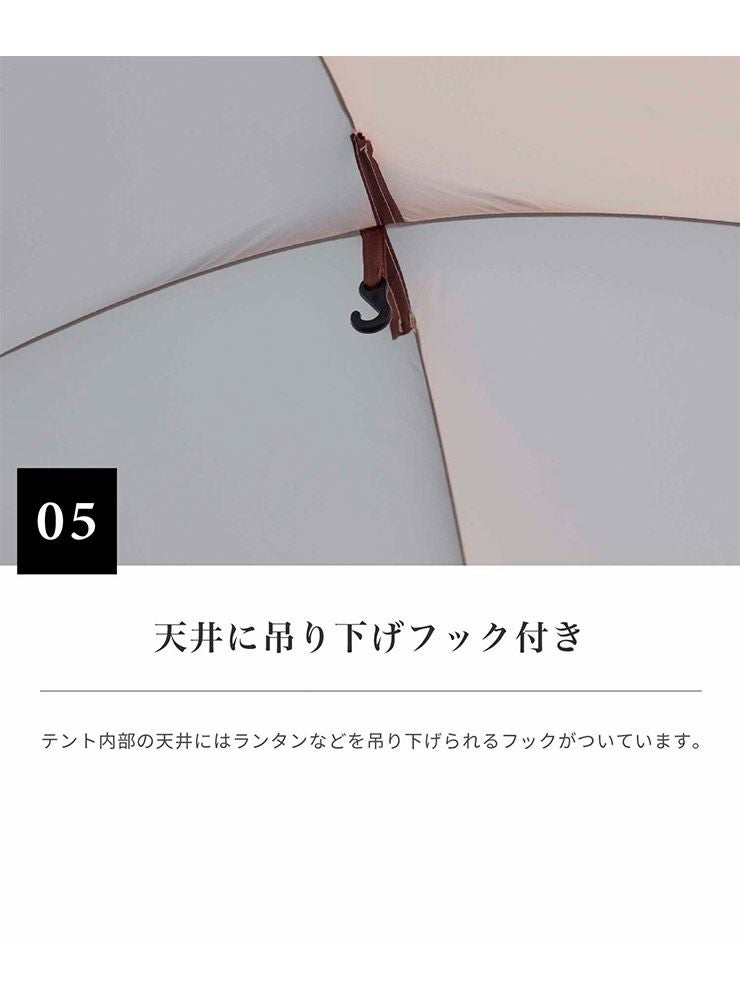 テント内部の天井にはランタンなどを吊り下げられるフックがついています。