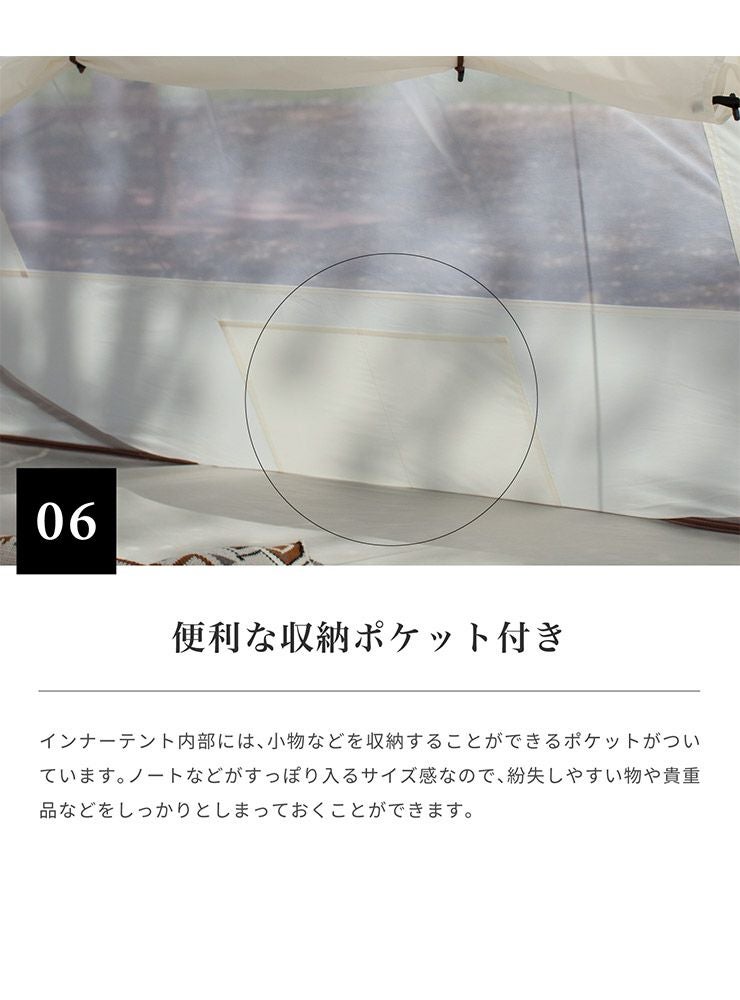 インナーテント内部には、小物などを収納することができるポケットが付いています。