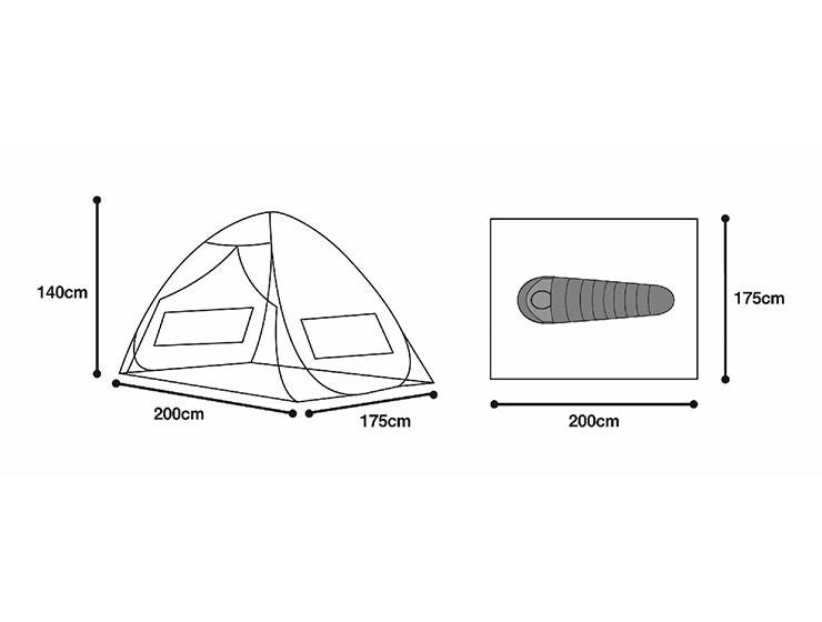 大人2人までなら足と手を伸ばせるサイズ感となっています。ソロキャンプだと快適に広々とくつろげる広さです。