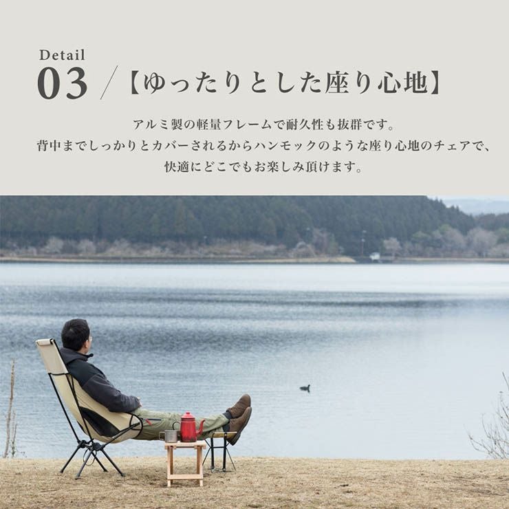 座面が深くハンモックのように体にフィット。