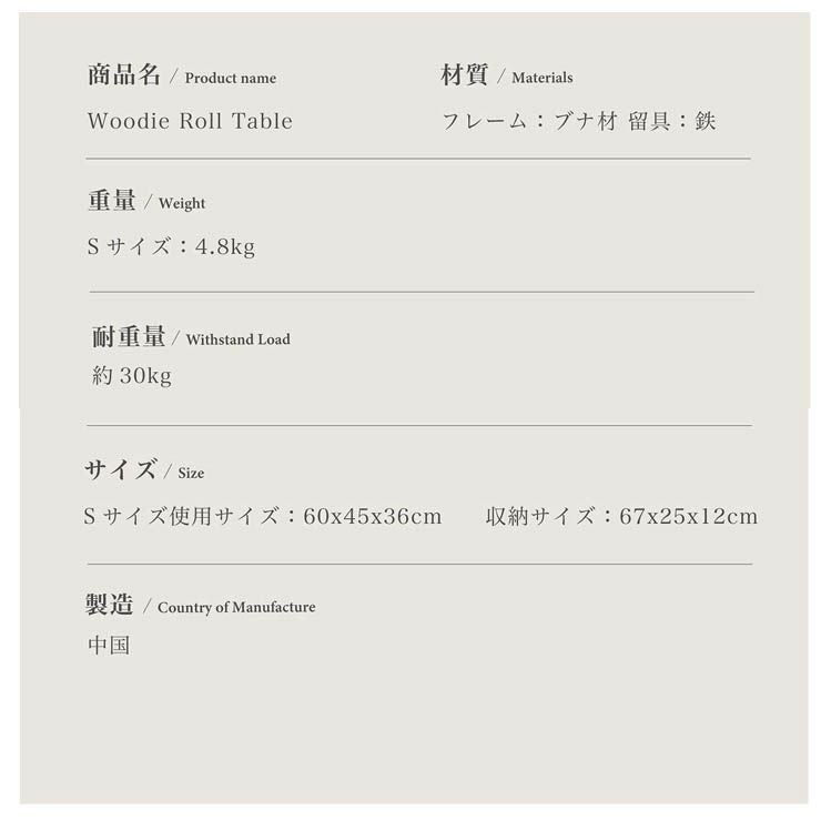 S'more スモア Woodi Roll Table 60 ウッディロールテーブル SMOrsRT001a 折り畳み 木製 キャンプ アウトドア