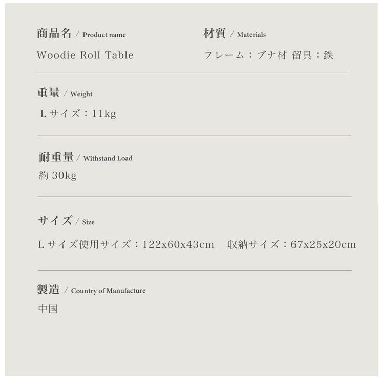 S'more スモア Woodi Roll Table 120 ウッディロールテーブル SMOrsRT001a 折り畳み 木製 キャンプ アウトドア