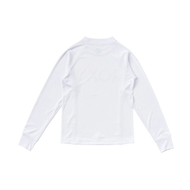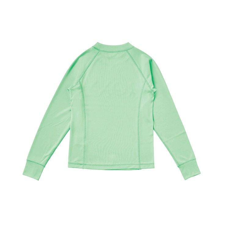 クルーネックのカバーアップラッシュガード。シンプルなデザインなので、どんなボトムとも相性抜群。また、被りタイプはアクティブに遊びたい、でも焼けたくない!というお子さまにぴったり。1枚持っておくと便利なアイテムです。UVカット機能を備え、さらにサムホール付きロングスリーブなのでカバー力が高いのも魅力です。