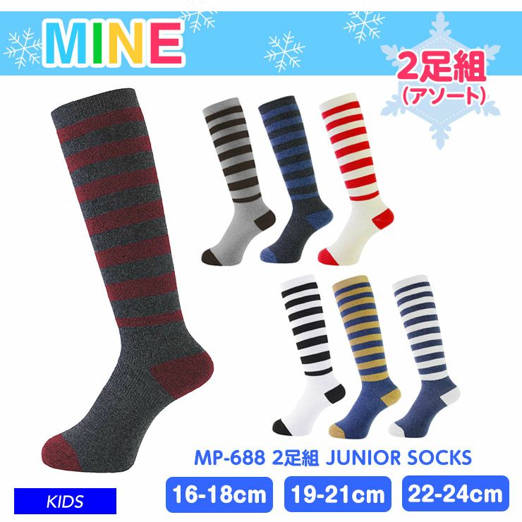 mine マイン MP-688 2足組 JUNIOR SOCKS ソックス ロングタイプ スキー 雪遊び キッズ ジュニア 子供用