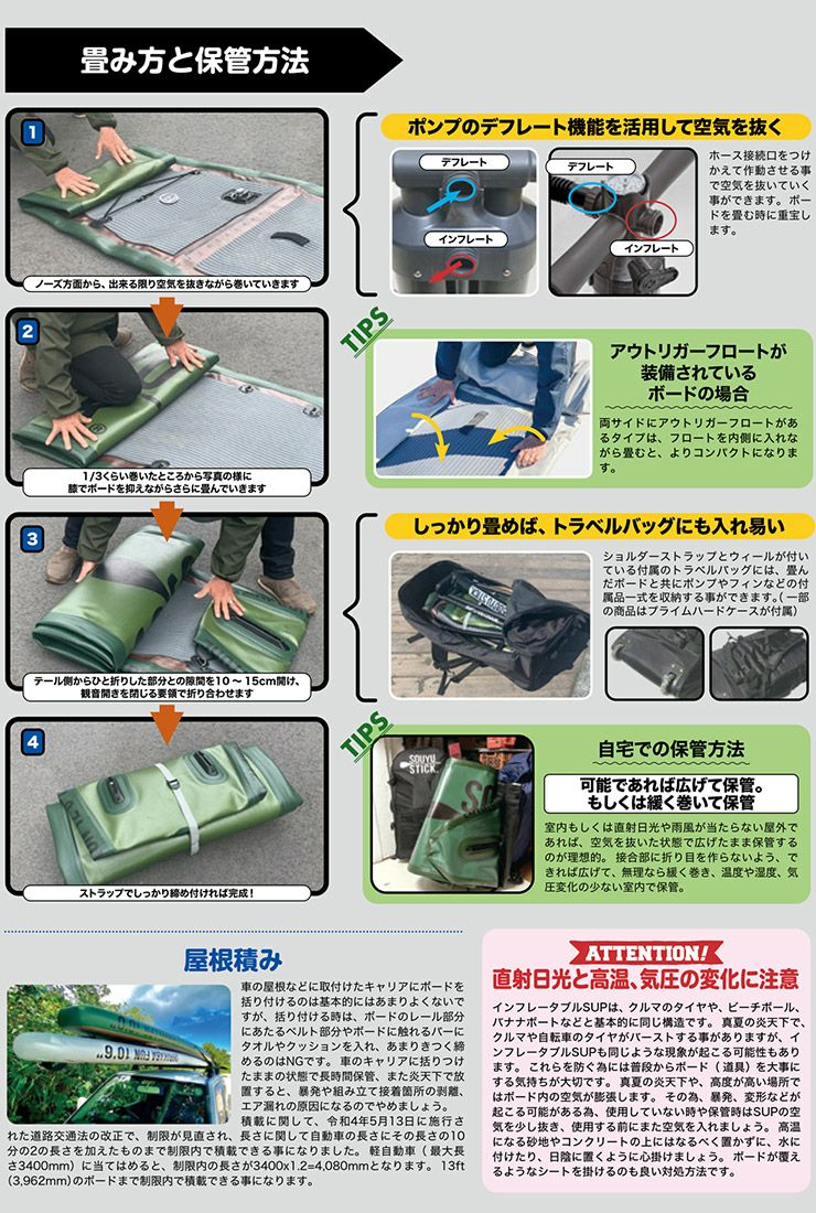 どこに利点を取るか?インフレータブルの強み、小さく畳める事による保管やクルマへの積み込み、上げ下ろしなど準備のし易さにポイントを置いています。