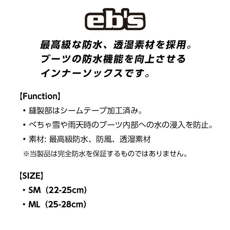 他の画像を見る 2026 べちゃ雪や雨天時の防水に 正規品 25-26 eb's エビス BOOTS INNER SOCKS HQ ブーツインナーソックス 防水機能アップ スノーボード 通常販売価格 ¥ 5,940 のところ WEB価格 ¥ 5,346 税込 会員特別価格 ¥ 5,360 税込 在庫切れ カートに入れる お気に入りに登録する