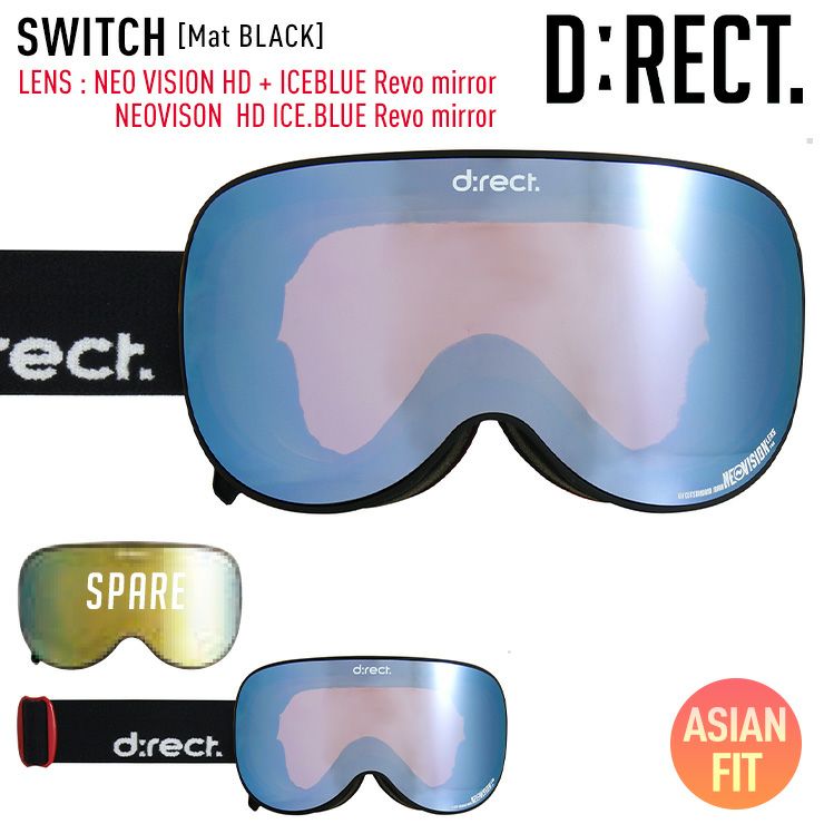 D:RECT ディレクト スノーボード ゴーグル ボーナスレンズ付き SWITCH カラー:Mat BLACK レンズ:NEOVISON HD ICE.BLUE Revo mirror 平面 【acc-cp-09】のレビューを書く